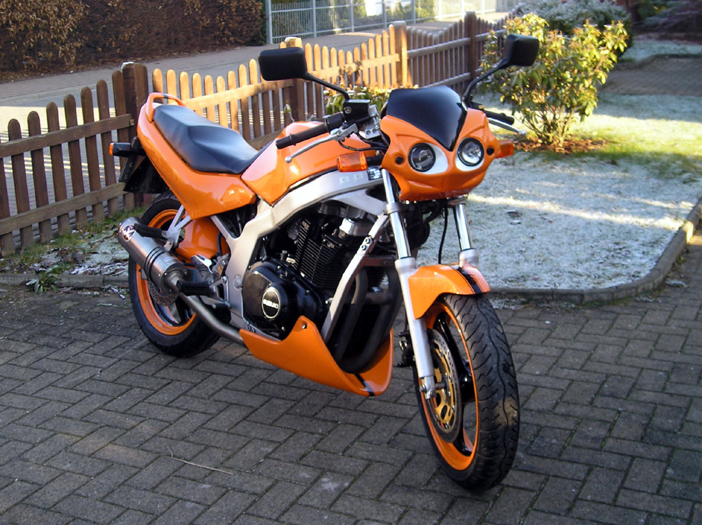 Der Grieche Suzuki GS 500, Baujahr 1990. Umbauten / Änderungen: - K&N Sportluftfilter - IXIL Shorty Auspuff - Umlackiert von schwarz auf Kommunal Orange mit Racing Streifen - Felgen lackiert in "Wagenfarbe" Anbausatz mit folgenden Teilen: - Hinterradabdeckung - Bugspoiler - Lichtmaske http://forum.gs-500.de/attachment.ph...6&d=1233524087 |