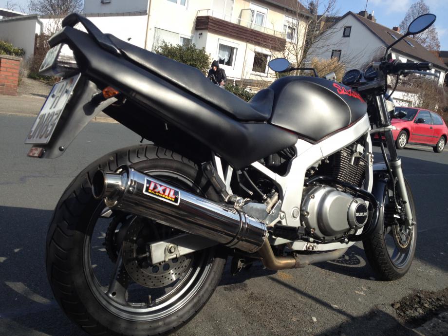 Suzuki GS 500 E, GM 51 B, Baujahr 1997 Umbauten / Änderungen: -Warnblinkanlage - FZR Scheinwerfer - gekürzte Frontblinker - diverse Sticker - BT 45 Reifen - Schwarzer Lackstreifen unten (Gute Idee von Goose Danke) - Krümmer lackiert (schwarz) - Gitter in Luftschlitze - 2. Rücklicht - Neues Rücklicht http://forum.gs-500.de/picture.php?a...pictureid=1603 http://forum.gs-500.de/picture.php?a...pictureid=1598 |