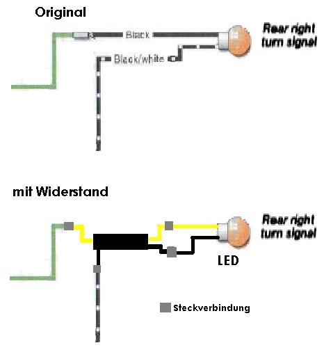 Versuch es einfach mal mit den kabeln. Kaputt gehen kann da nichts. Ich hatte das Probelm auch(Hab hinten die von polo und vorne von Louis). Bei den von Louis stimmten die Farben nicht überein. Deshalb hat es halt zu schlenn geblinkt, weil der Widerstand sozusagen umgangen wurde. Nachdem ich die alle mal getauscht hatte, hat es funktioniert.