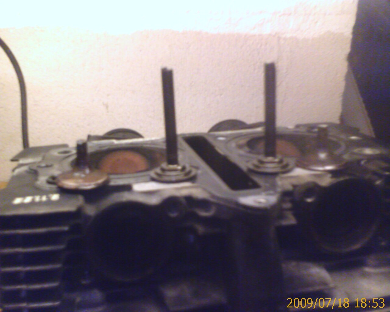 neue (gebrauchte) Ventile (neu ca. 25€ gebr. ca. 12€)+ Ventilschaftdichtungen (grobmotorik.de) besorgen und nächste Woche mit dem Kopf bei mir vorbeischauen ..... Vielleicht können wir den Kopf wieder herrichten. Ventile einschleifen, Schaftdichtungen wechseln, einbauen. Gebrauchte Ventile bekommts du vielleicht bei Witte in Braunschweig: http://www.bike-teile.de/dealindex.php? ... t&deal=396