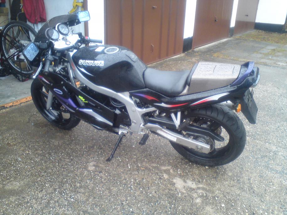 .Alles fing damit an das ich mir ne 2. GS holen wollte zum schrauben üben... Gesagt getan, schnell war was passendes gefunden. Eine 95er GS mit Gimbel Umbau .Klar war was ich machen wollte. Erstmal Zerlegen und wieder "schön" machen. Dann ging`s ans Teile zusammen suchen für`n B6 Umbau. Wie zu erwarten gab`s da ein paar Probleme weil ich noch nicht wusste was wie zusammen passt. Aber es ist möglich ne Pop Felge mit Kult Teilen zu verbauen, man braucht nur ein paar zusätzliche Distanzen , Danke Damui!Nun hatte ich hinten ne Pop Felge mit geraden Speichen, gleiches brauchte ich vorne also ne GSX600F Felge besorgt und gleich mal eingebaut, schaut gleich viel schicker aus BREMSPROBE... gab kleine probleme, viel zu Schwammig ![]() Soo nun hatte ich mir schon länger vorgenommen meinem Benzinhahn etwas zu Pimpen. Also ein "neuer" musste her. Nachdem ich mir fix nen passenden Adapter aus Edelstahl gebastelt hatte passte auch der 2002er Hahn in die 95er GS .Dann hatt se natürlich noch ein LED Rücklicht bekommen, das Originale ist ja mehr als nur hässlich Leider hatte meine Gimbel nur das serien Heck, also musste zumindest ein Variohöcker her, hab ich zum Glück hier im Forum gefunden Somit war eig. alles fertig und es konnte wieder zusammen gebaut werden. Lack ist noch etwas unschön, wird noch bei Karsten lackiert wenn ich mir mit der Farbe einig werde, nehme gerne Vorschläge entgegen
