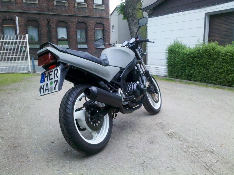 Hallo , nach über einem halben Jahr ist es nun endlich geschafft . Da es wohl kein wirklicher Umbau ist kann es auch verschoben werden . Habe lediglich sie GS komplett aus einander genommen und den Rahmen sowie einige Anbauteile und den Lacksatz neu Lackiert . Bitte nicht meckern wurde alles mit der Dose gemacht , Low Budget halt . Erneuert wurden dabei auch die Simmerringe und die Staubkappen der Gabel sowie neue Wirth Federn inkl. 15ér Öl und Gabel-Protektoren . Mini Blinker und kürzere Umlenkhebel wurden auch Verbaut .