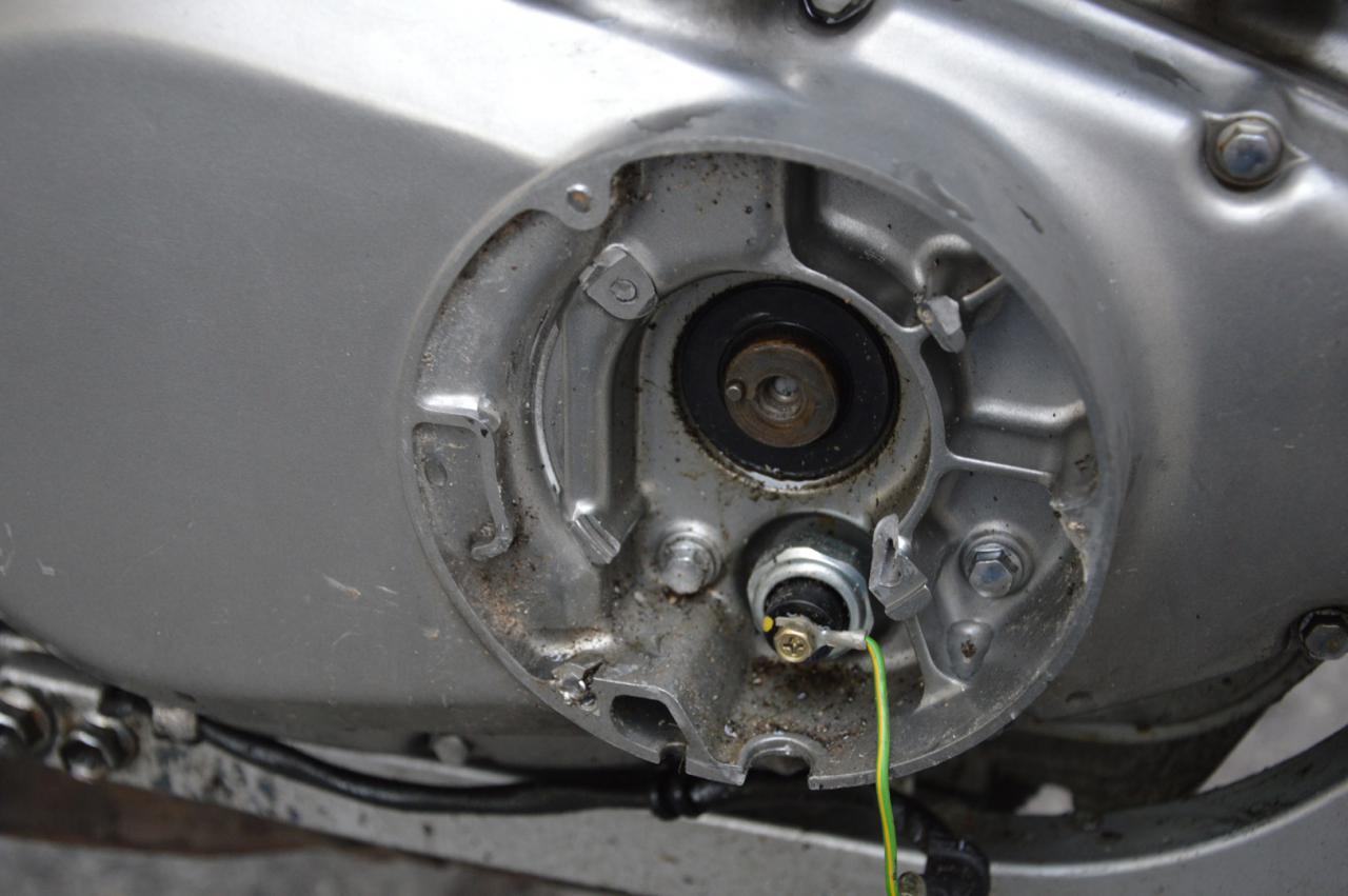 Der Zündgeberdeckel wurde abgerissen und mit ihm die befestigenden Schrauben. Der Zündgeber selber wurde stark verbogen und die beiden Schrauben die ihn an den Kupplungsdeckel hielten herausgerissen. (Siehe Bilder)