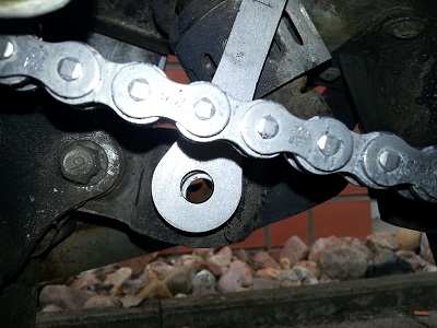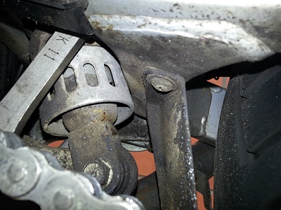 5. Schon allein weil es einfacher ist, nimmt man während der Arbeiten den Zug von der Kette, indem man die Hinterachse löst und die Kettenspanner ganz rein schiebt.