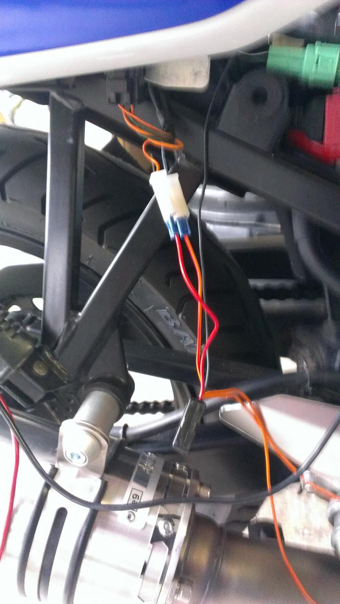 Die Organgen Kabel einfach in die Halteklemme der Hinteren Blinker mit einschrauben oder einstecken - und das war es auch schon. Eine Kabelklemme oder Lüsterklemme kann da sehr hilfreich sein.