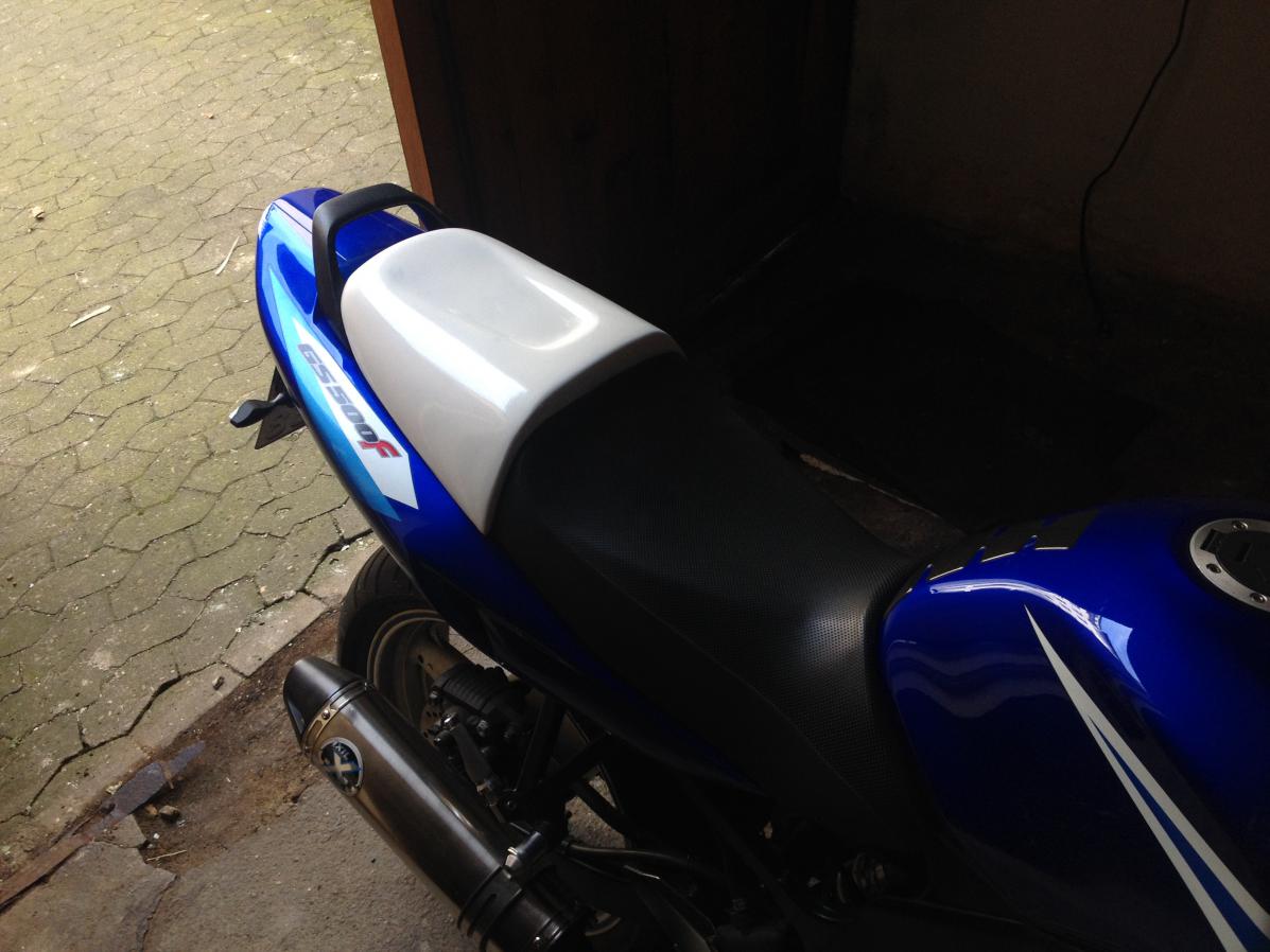 habe nach meinem Sturz die hübsche wieder aufgepäppelt. Verkleidung ist nun komplett schwarz. Kleine Blinker und ein neuer Lenker gabs in diesem Zuge auch gleich mit.