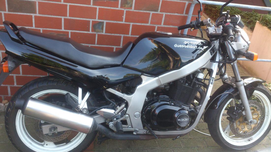 Habe gestern meine GS 500 geholt. Der vorbesitzer hat eine unfreiwillige Feldstudie mit ihr durchgeführt. Bekannt waren mir beim kauf die folgenden gravierenden Mängel: - Scheinwerfer defekt - Tacho zersägt - Blinker vorne rechts defekt - Lenker verbogen Mängel die jetzt noch aufgefallen sind: - Kleines Elektroproblem (Rücklicht blinkt paralell zum Blinker wenn der an ist) - Auspuss schleift an der innenseite - GS verliert Öl (weiß nicht wo, befürchte Ölwanne ö.Ä) Lenker habe ich bereits wieder den Stummellenker dran. Die Fassung für den scheinwerfer ist auch wieder dran und Blinker tut auch was er soll. Tacho ist bestellt, hoffe es geht bald weiter. Halte euch auf dem laufenden wenn interesse besteht Hier schonmal 2 Bilders: |