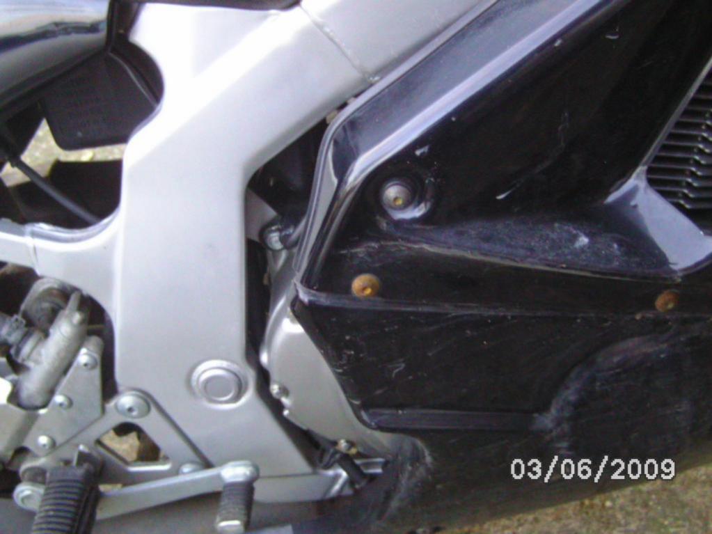 So, hier mal die Fotos. Am meisten stören mich sie fetten silbernen Schrauben an der Scheibe. Gibt es die in Schwarz und flach. Die rostigen Schrauben an der Verkleidung genau so. Hätte die am liebsten Schwarz.