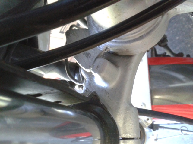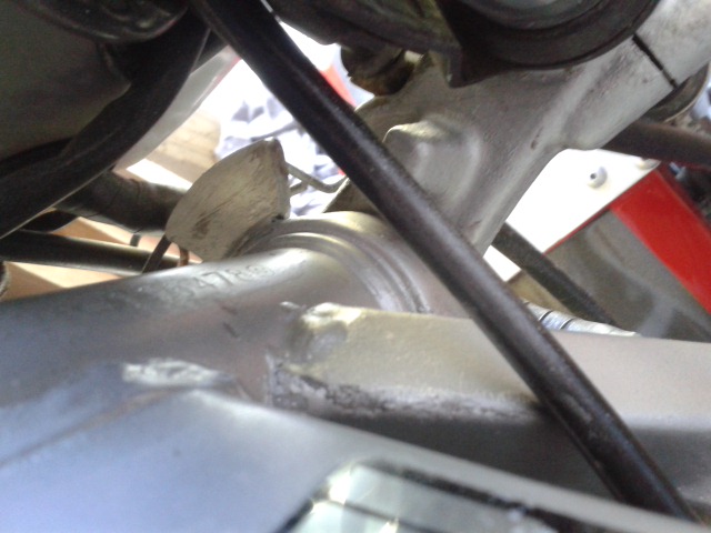 Der Lenkanschlag am Rahmen sieht auf den ersten Blick gut aus, den mal genauer auf Risse an der Schweißnaht überprüfen. ( Riss = Rahmen Schrott da nicht geschweißt werden darf )
