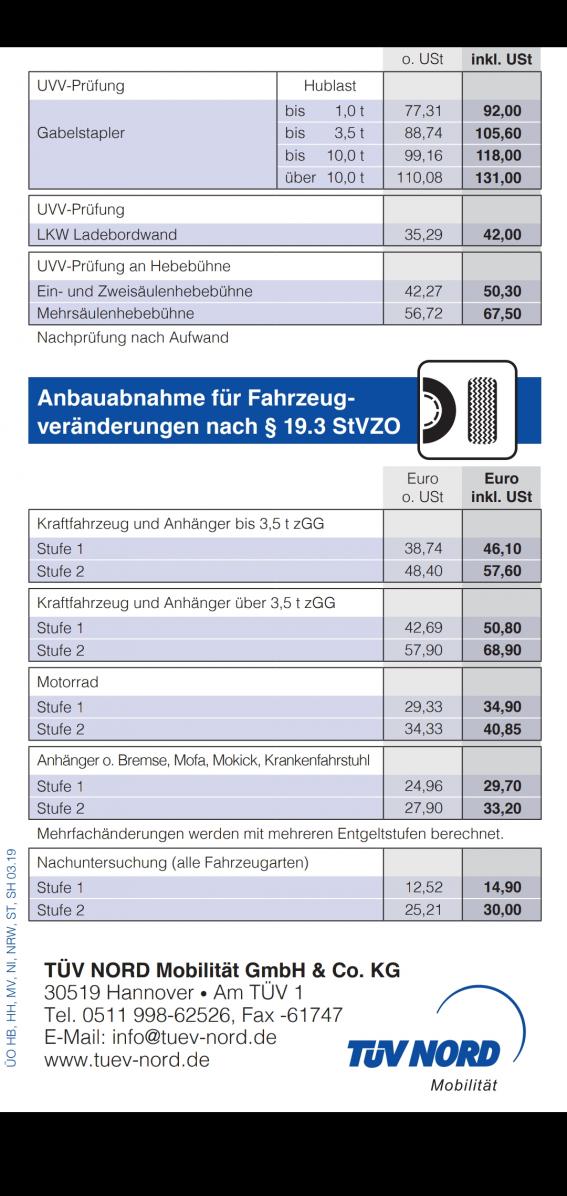 Beim TÜV-Hanse habe ich für die Abnahme der Entdrosselung nach §19(3) StVZO 60,89 € bezahlt.