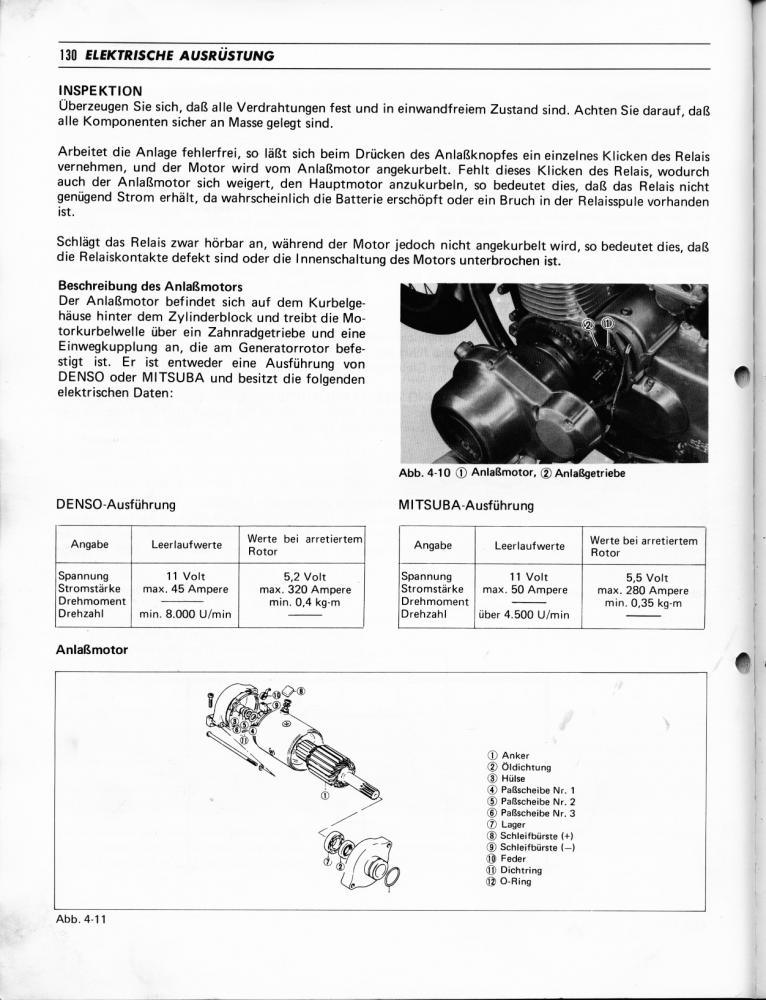 Nein. Gemessen (!) liegt der Startstrom beim Drücken des Anlasserknopfes bei heissem Motor bereits jenseits der 120A und sinkt dann sofort auf ca. 70-80A ab. 50A sind zu wenig. Ich weis nicht ob es dir aufgefallen ist: Ich habe oben die Werte einer GS500-4Zyl gepostet, da dieser Startersystem-Typus in so gut wie allen Suzuki-Motoren verbaut ist. Schau mal auf die Leerlaufstromaufnahme....