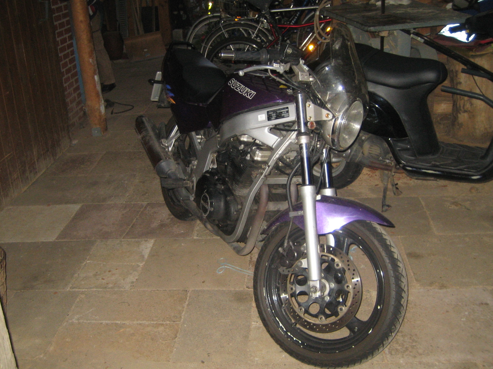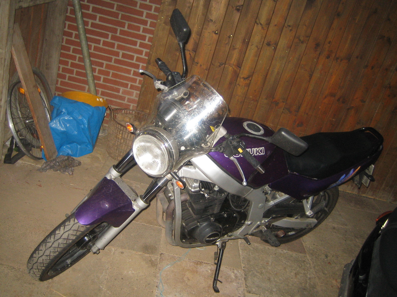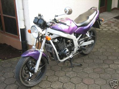So, nachdme ich schon lange hier im Forun fleißig Beiträge lese und selber kräftig amFragen stellen und Kommentare geben bin, wollte ich mal meine umbaustory, die eigentlich keine ist beginnen. seid dem 24.1.08 fahre ich meine GS in lila, schwarze Dosenlack-Felgen mit reichlich Macken und Dellen im Tank, der teilweise schon Lackabplatzer hat.