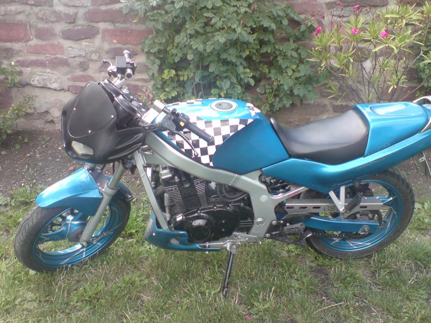 also erstmal zu deinen fragen Maske, Schutzblech vorn und Fußrasten sind Eingetragen, Bugspoiler, Lenker kommen jetzt (lenker hab ich vor ner woche erst bekommen), für die Stahlflex gabs ne ABE (die hab ich auch erst seid einer Woche). Die Schlagringe sind Eigenbau aus Edelstahl. Da hat bisher niemand was gesagt, die Ellipsoidscheinwerfer vorn haben E Zeichen, Halterung war auch eigenbau, da gabs auch keine Probleme beim letzten TÜV. Der Auspuff hat wie schon gesagt keine Zulassung, ich bau mir jetzt aber noch nen Killer damit er etwas leiser wird, fürn TÜV hab ich meinen Original Topf. Der wird dafür dann einfach dran gebaut, kein Problem