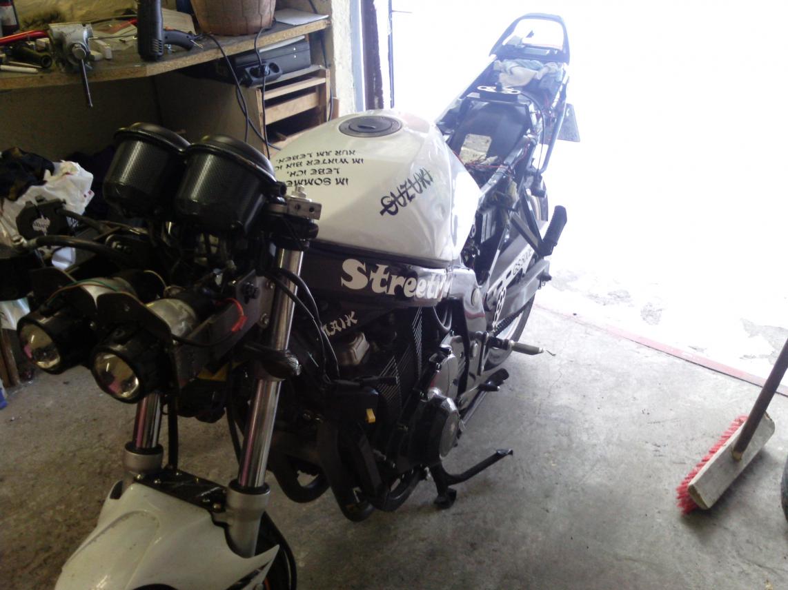 Zum Thema Fahrwerk solltest du dir Gedanken machen. Wenn das schon ne Art Fighter sein soll, willste dich doch nicht blamieren, weil du den anderen KRADlern die Kurven zuparkst Da ist mit progrssiven Gabelfedern (inkl. etwas zäherem Öl) und einem einfachen Zubehörfederbein (Wilbers Ecoline ist die Einstiegslinie) schon viel zu holen. Die GS ist Mal eine Maschine, wo man selbst mit nem Holzhintern den Vorher/Nachher Fahrwerksunterschied sehr deutlich merkt. Vom Gewinn an Sicherheitsreserven ganz zu schweigen. Warst du seit den Umbauten eigentlich schon beim TÜV? Was sagen die zu den ganzen Schlagringapplikationen? Die Rennleitung macht einem deswegen ja gern Ärger. Bugspoiler, Lampenmaske, Lenker, Stahlflex und Co müssen zumindest für Teile ohne ABE (Lenkerklemmböcke zB) abgenommen und eingetragen werden. Auch die Rasten gab es früher nicht mit ABE (ich musste meine LSL-Rasten noch eintragen lassen). Wenn mans ganz genau nimmt, wäre auch dein Spritzschutz rundum nicht STVZO-konform. Achso: Der Auspuff hat auch keine Zulassung für die GS...damit fällt die nächste HU eigentlich schon fast aus (sofern du den nicht irgendwie gemauschelt eingetragen bekommen hast).