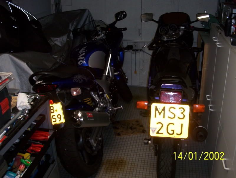 Die ganze "Familie" in der Garage. Also TL1000S und SV650S (Zusammen mehr als 110.000km!) und jetzt noch ne GS.