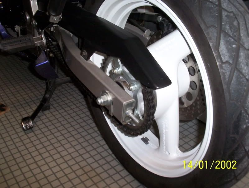 Sogar den Stutzt fuer den Haubtstander ist drauf. Nur kein Rubber drin aber die nimmt mann einfach von den original Auspuff.