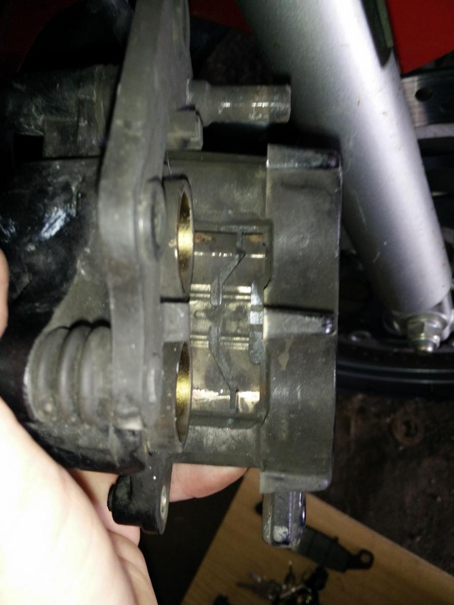 Die Staubdichtungen siehst du hoffentlich nicht. Sonst müssen die Kolben raus und neue Dichtungen rein.