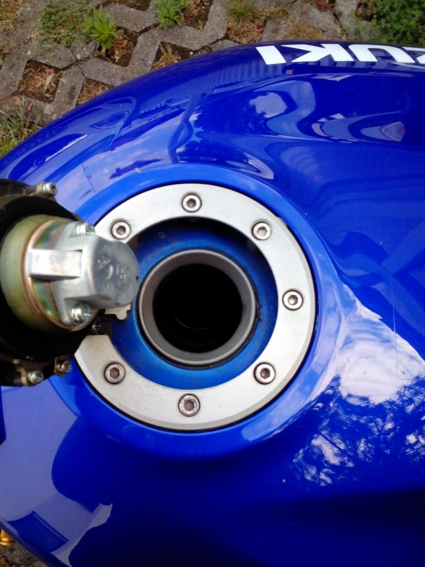 Ach, der Tankstutzen der F hat noch mal eine Querschnittverengung, das wusste ich noch nicht. Hab noch keinen gesehen. Da wird mir jetzt manches klarer, mit dem Blick in den Tank. Jetzt weiß ich auch, wie das mit dem Ausschneiden des Tankstutzens gedacht war.