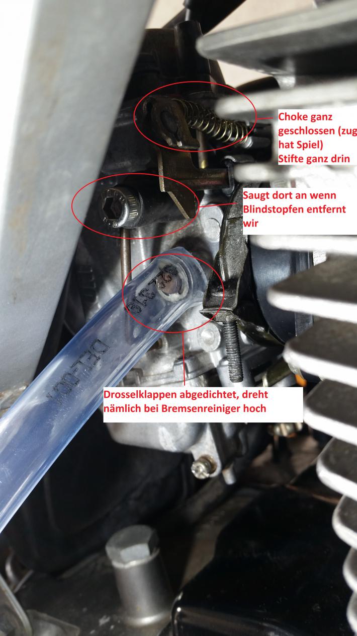 Bei den link den du gepostet hast auf dem 3 Bild, mein blindstopfen sitzt ein weiter oben wenn ich den den abziehe merke ich er saugt sehr stark. Auf der anderen Seite von Vergaser geht von dort der Schlauch zum Benzinhahn. Ist da jetzt was falsch gelaufen? Bleibt der obere offen (komplett ohne stopfen) dreht sie viel höher. |