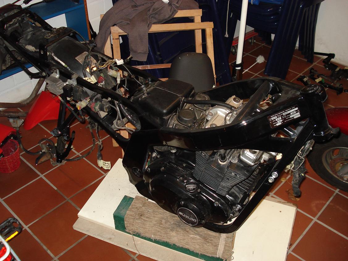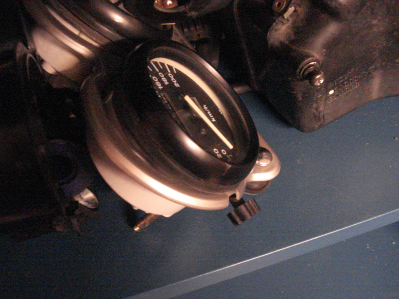 hab schonmal n paar Bilder zum derzeitigen Zustand...und ne Frage ...wie bekomm ich den Tacho aus dem Rahmen raus (siehe Bild)...das Rad für den Tageskilometerzähler is irgendwie im Weg...
