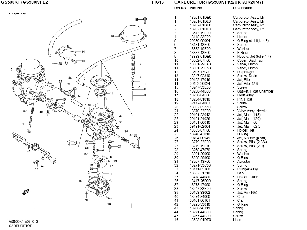 Hab da noch was in den FAQ´s gefunden: Ist von AmigaHarry(und der hat wirklich Ahnung!!!!!) __________________________________________________ __________________________________________________ ___ Habe mir das jetzt angesehen -ist so wie ich vermutet habe: Es gibt in EU 3 Versionen der gedrosselten GS500 (K1/K2): GS500H, GS500U und GS500HU Je nachdem welche du hast, sind folgende Duesen gedrosselt eingebaut: H: #135 Kennung Vergaser:01DF (Deutschland?) U: #115 Kennung Vergaser:01DG (Spanien, Deutschland?) HU:#130 Kennung Vergaser:01DK (Oesterreich, Deutschland,) (Genaue Laenderzuordnung ist in meinen Unterlagen schwierig....) Zum Entdrosseln muessen in allen 3 Typen #115 und andere Schieber eingebaut werden. Ausgenommen davon ist die Type GS500U - diese braucht nur andere Schieber. __________________________________________________ __________________________________________________ ___ Welche Haupdüsen hast du denn jetzt verbaut? Tausch mal den Luftfilter. Ausblasen oder so hat "fast" keinen Sinn. Pass aber auf das du den Filter 01D50 erwischt. Das ist der mit dem Rohr drin bis etwa zur Hälfte. Wird bei Tante Louise gerne falsch verkauft(war oder ist nämlich falsch gelistet...)