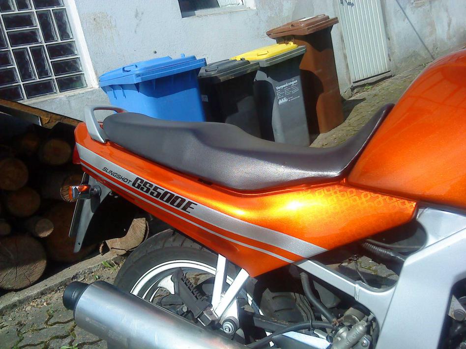 Bewerbung mit Bild 1 und 4 GS 500 E BJ 95 Superbike Lenker ABM Stahlflex K&N Filter Lackierung von comix Candylackierung tangerine orange Untergrund Magnum silber Schriftzüge lackiert Airbrush auf dem Tank Kosmetikbox unter der Sitzbank Geändert von Manou (29.09.2013 um 09:24:16 Uhr) |
