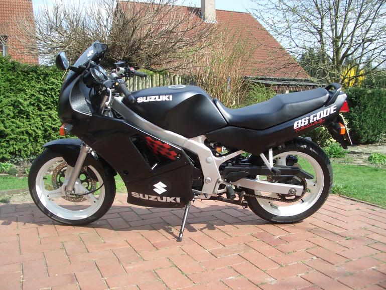 Habe sie ungefähr genau vor einem Jahr gekauft zu einem Zeitpunkt, an dem ich noch nicht mal den Führerschein hatte, aber das Schnäppchen konnte ich mir nicht entgehen lassen. Sie ist Baujahr 94' und technisch war damals alles super in Schuss, inklusive der Verschleißteile. Sie hatte erst 17000km runter und war für 400€ ein dementsprechendes Schnäppchen. Meine Traummaschine ist eig. eine aktuelle GSX-R und ich stehe überhaupt nicht auf veraltete Designs etc. Aus diesem Grund wollte ich meine GS ein wenig moderner machen und habe deshalb nach und nach mir einige Teile dazu gekauft. Beim Kauf der Maschine hatte sie bereits neue Außenspiegel mit integrierten Blinkkern, MiniLED-Blinker hinten und eine komplette Edelstahlauspuffanlage, was die 400€ eigentlich noch irrealer machen. Seit ich sie habe, hat sich noch folgendes getan: - LED-Rücklichter Sharknose, für die ich eine eigene Adapterplatte gebaut habe, die wiederum mit schwarzem Schaumstoff hinterlegt ist. - Originaler SV650 Klarglasscheinwerfer vorne. - Stahlflexbremsleitungen - Orangene Felgenzierbänder - Orangenes Tankpad Und so steht sie jetzt da |