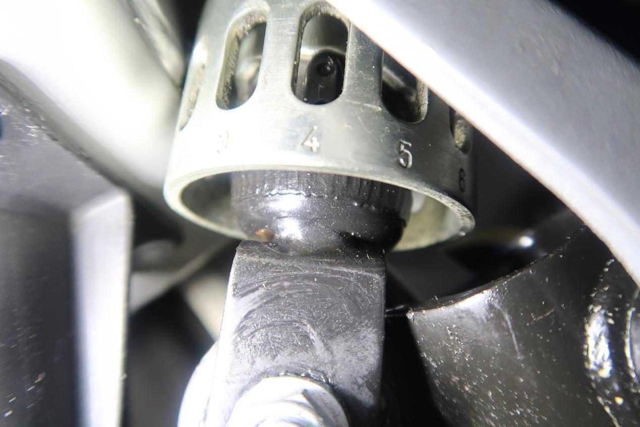 Das GS-Federbein kann man von der Kettenseite her einstellen. Da saut man sich zwar ein, aber dafür kommt man da gut ran.