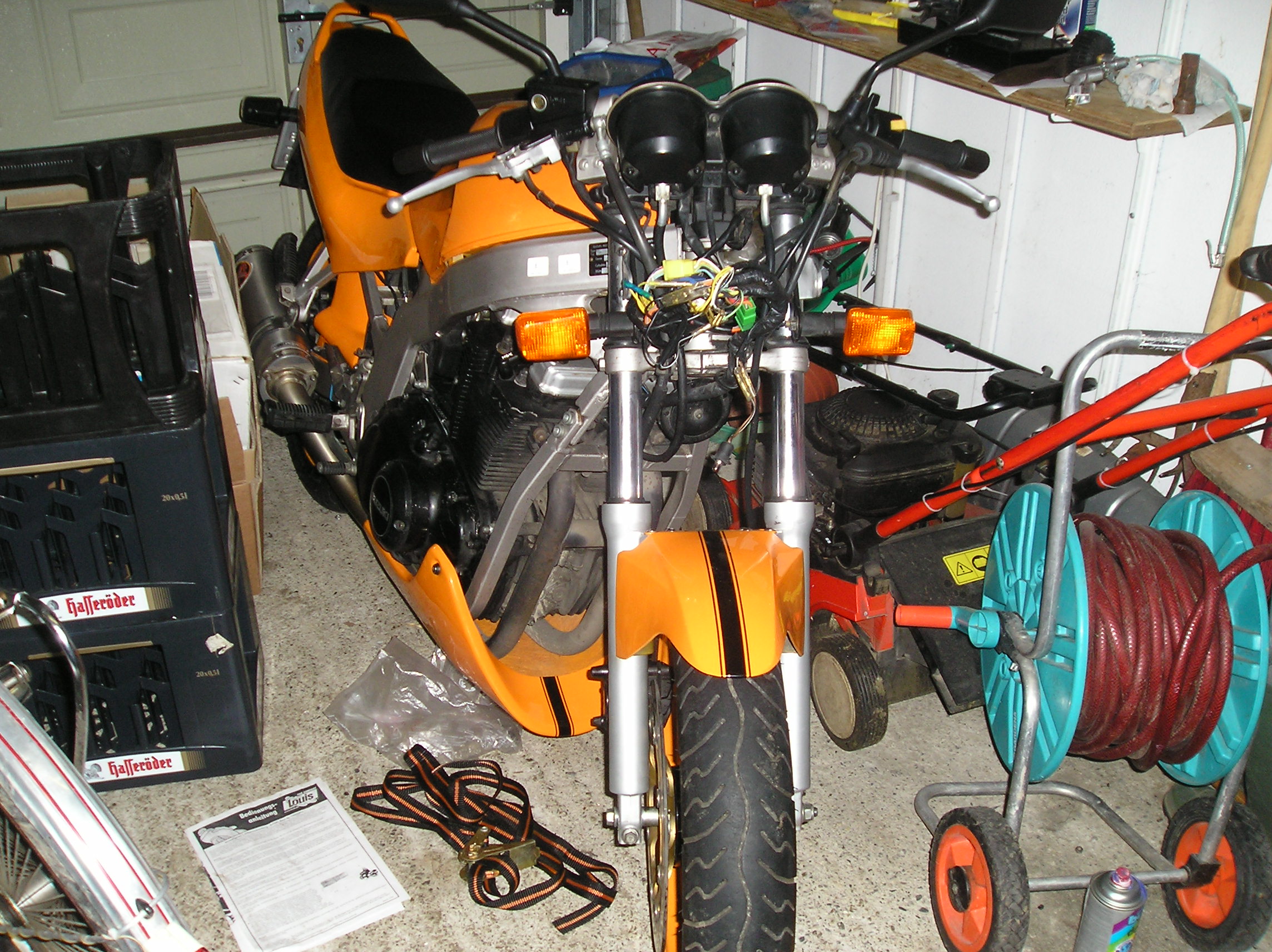 Meine GS hab ich vor gut 5 Monaten gekauft in diesem doch recht gutem Zustand. [attachment=6:2gk6zi2i]P1010064.JPG[/attachment:2gk6zi2i] tja aba irgendwie reichte es mir nicht^^ und es kamm ein IXIL dazu und ein K&N Luftfilter hinzu. Tja und dann war auch schon wieder winter Da ging der Umbau so richtig los so sah sie zwischenzeitlich aus [attachment=5:2gk6zi2i]P1010085.JPG[/attachment:2gk6zi2i] In dieser Zeit habe mir so einige Dinge gekauft. Bugspoiler Hinterradabdeckung eine Lichtmaske die Lackierung wurde vom Profi gemacht un heißt Kommunal Orange mit schwarzen Raching Streifen finde das es super aussieht. Ich habe versucht diesen "Styl" über das Motorrad zu verbreiten sprich felg und alle anderen Teile. so sieht sie nun aus [attachment=3:2gk6zi2i]P1010107.JPG[/attachment:2gk6zi2i] [attachment=4:2gk6zi2i]P1010109.JPG[/attachment:2gk6zi2i] [attachment=2:2gk6zi2i]P1010124.JPG[/attachment:2gk6zi2i] [attachment=1:2gk6zi2i]P1010127.JPG[/attachment:2gk6zi2i] [attachment=0:2gk6zi2i]P1010130.JPG[/attachment:2gk6zi2i] So sieht sie bis jetzt aus Moment kommen noch Miniblinker und LSL Fussraste dran. Dann ist sie fertig und warte auf besseres Wetter als schnee und Kälte