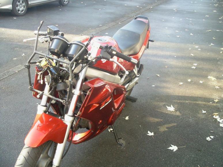 Sieht aus wie eine SerienCBR mit einen Polo Auspuff und 2 Billighelmen.