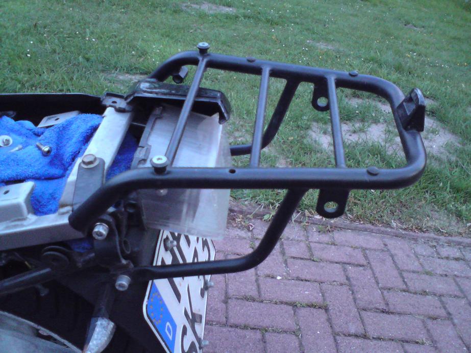 (Noch den "kleinen" 17 Liter Tank, silbernen Motor und Felgen in Graumetallic) der Träger ist wohl auch für dieses Modell, aber die Montage erschließt sich mir ohne Anleitung nicht.