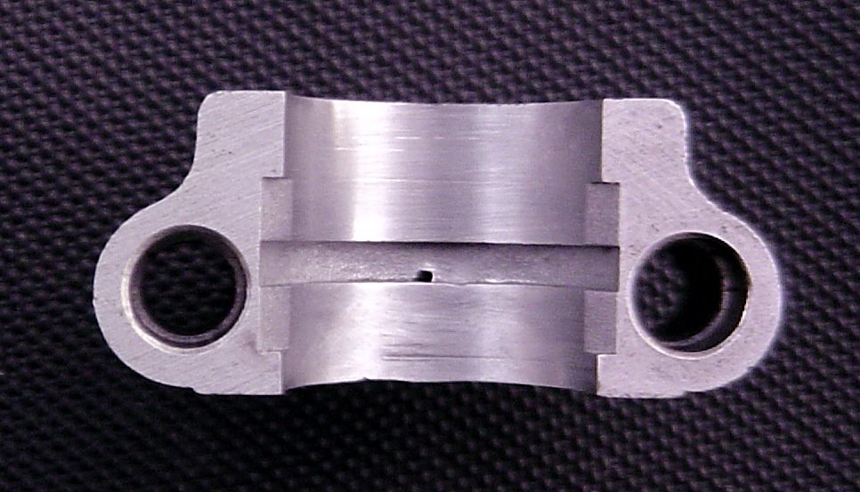 So, heute läuft der Motor wieder. Der Bock wurde noch einige Male ausgebaut, nachdem ich den Ventilabstand gemessen hatte, da ich feststellen musste, daß der Idiotenhügel noch immer blank wurde, wenn die Welle weitergedreht wurde. Das gab mir die Gelegenheit für ein Foto des Loches von unten: