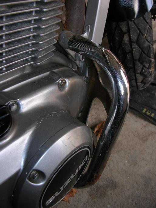 Der Vorbesitzer hat sich einmal mit der Maschine hingelegt und dementsprechend sehen auch die Sturzbügel aus. Jedoch sagt er, dass es nur aus geringer Geschwindigkeit war.