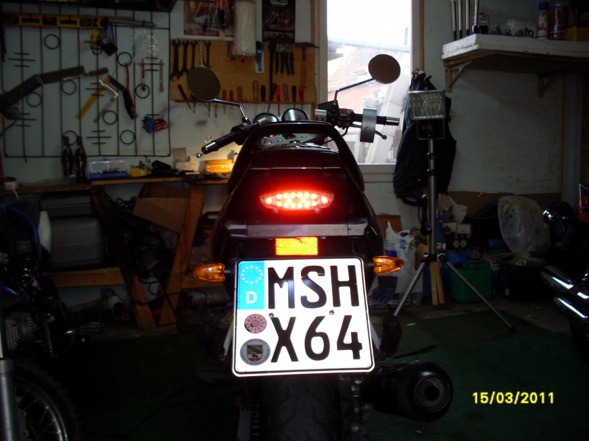 Für das zweite Rücklicht brauchst du auch ein Adapterblech (die Abstände der Halterungen sind nicht genormt und bei fast allen Motorradmodellen unterschiedlich). Zusätzlich brauchst du noch eine Verblendung für den Rücklichtausschnitt in der Heckverkleidung...das sieht sonst sehr bescheiden aus.