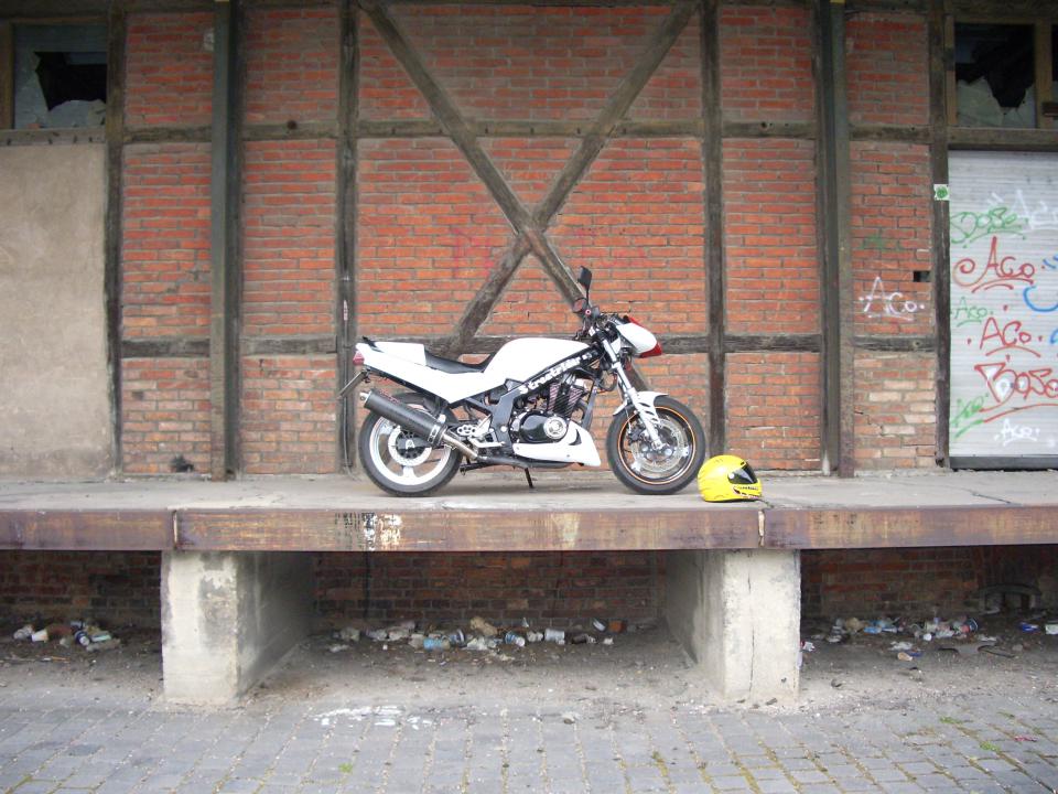 ach ja, für alle die sich eventuell schon mal gefragt haben was auf einigen meiner bilder im hintergrund abgedeckt steht, das ist dass motorrad von mein dad