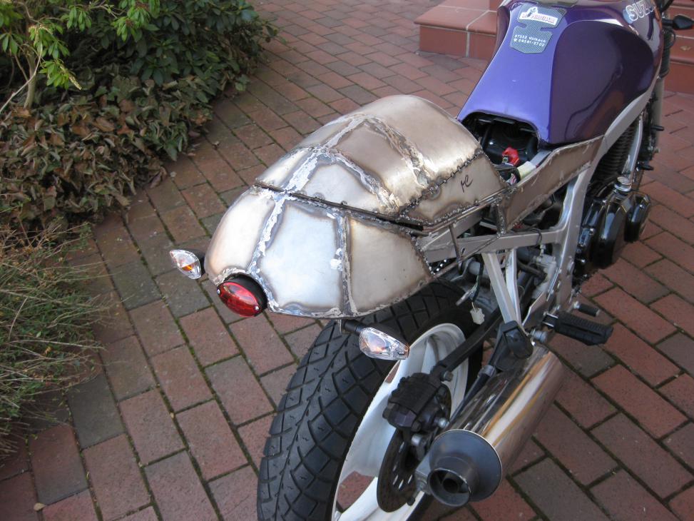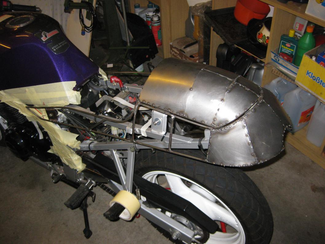 Morgen gibts mal wieder neue Bilder. Heck ist jetzt komplett und wird bald lackiert, Kettenschutz ist auch soweit nur der Radlauf ist eine große Unbekannte.