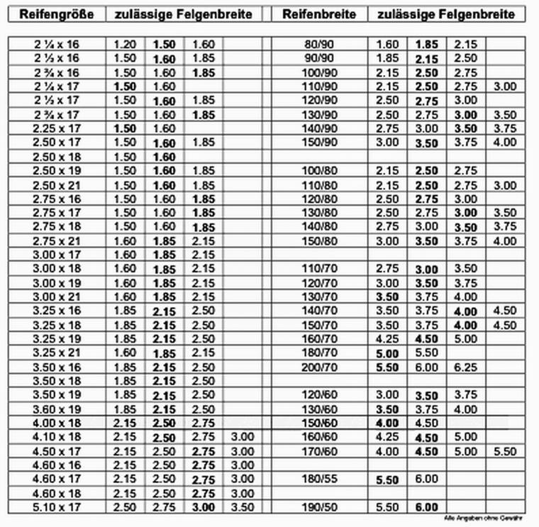 Wir hatten zu einer Zeit als es um dicke Reifen auf GS Felgen ging mal die Hersteller angeschrieben und gefragt welche Reifengrößen auf welche Felgen dürfen... Nicht ob sie passen. Die Antworten bei den Diagonalreifen waren da sehr unterschiedlich, aber bei den Radialreifen waren sie alle gleich. Als ob es dafür eine Norm gäbe.... 150/60 17 darfst du auf ner 4" und ner 4,5" Felge fahren. 160/60 17 darfst du auf ner 4,5 Zoll und ner 5" Felge fahren. 170/60 17 darfst du auf ner 5" und 5,5" Felge fahren. 180/55 17 darfst du auf 5,5" und 6" fahren. 190/50 17 darfst du auf ner 6" Felge fahren. Hier hören dann die Seriengrößen auf, und es fangen die Sonderserien an. Wir sprechen hier übrigens nicht vom TÜV oder so, sondern von den Freigaben der Herteller welcher Reifen auf welche Felge darf. Ein TÜV Prüfer könnte jetzt theoretisch sich über das alles hinwegsetzen, und es nach gründlicher und teurer testerei eintragen, aber ich Zweifel stark das es überhaupt ein Prüfer machen wird. Wenn was passiert, dann ist er dran. Wenn du also nen 170er fahren willst, dann schau am besten mal ins Banditforum, die bauen teilweise 5,5" Felgen in die 600er Banditschwinge ein.