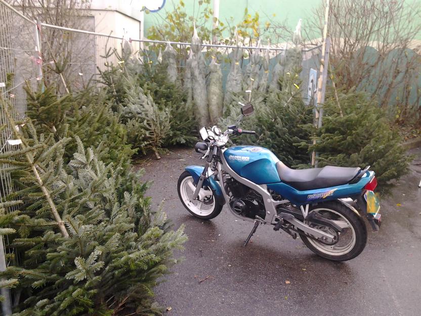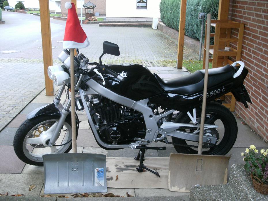 Deine GS mit 'ner Weihnachtsfrau drauf (ohne Bart).