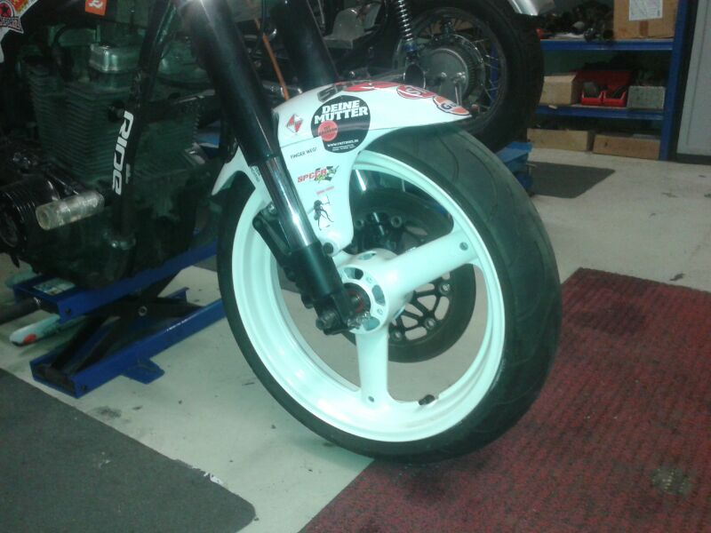 Das wird nicht nötig sein, da kein Fender mehr dran kommt. Freitag kommt die neue fFelge für hinten und dann wirds bald fertig.