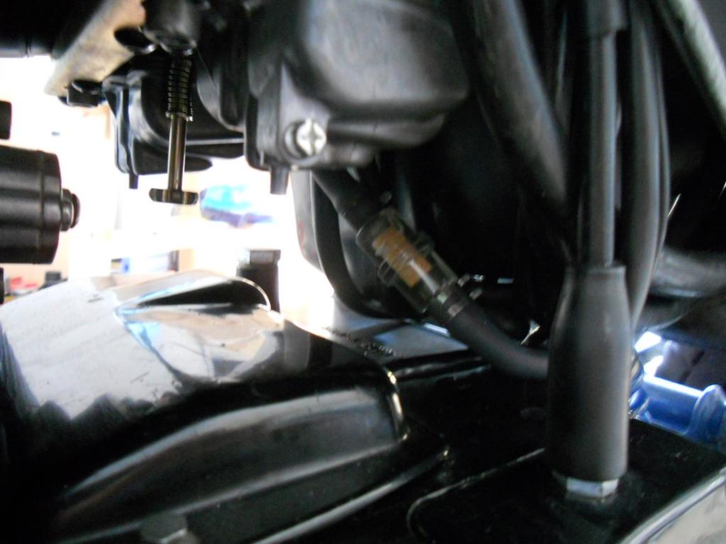 Ich rede vom ON/RES/PRI Benzinhahn. Den baust du einfach an (muss ja eh dran sein, da du vor´m Synchronisieren die Maschine fahrmfahren musst). Wenn du dann den Tank abnimmst, hast du die 2 Schläuche (ON und RES/PRI) offen. Da auf Reserve auch der ON-Schlauch offen ist, verschließt du den ON-Schlauch und steckst die Spritflasche auf den RES/PRI Schlauch.