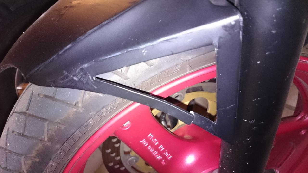 Verkleben, spachteln, neu lackieren? Mit Thermoplast den Riss von hinten ausfüllen? Den Fender irgendwie "schienen"?