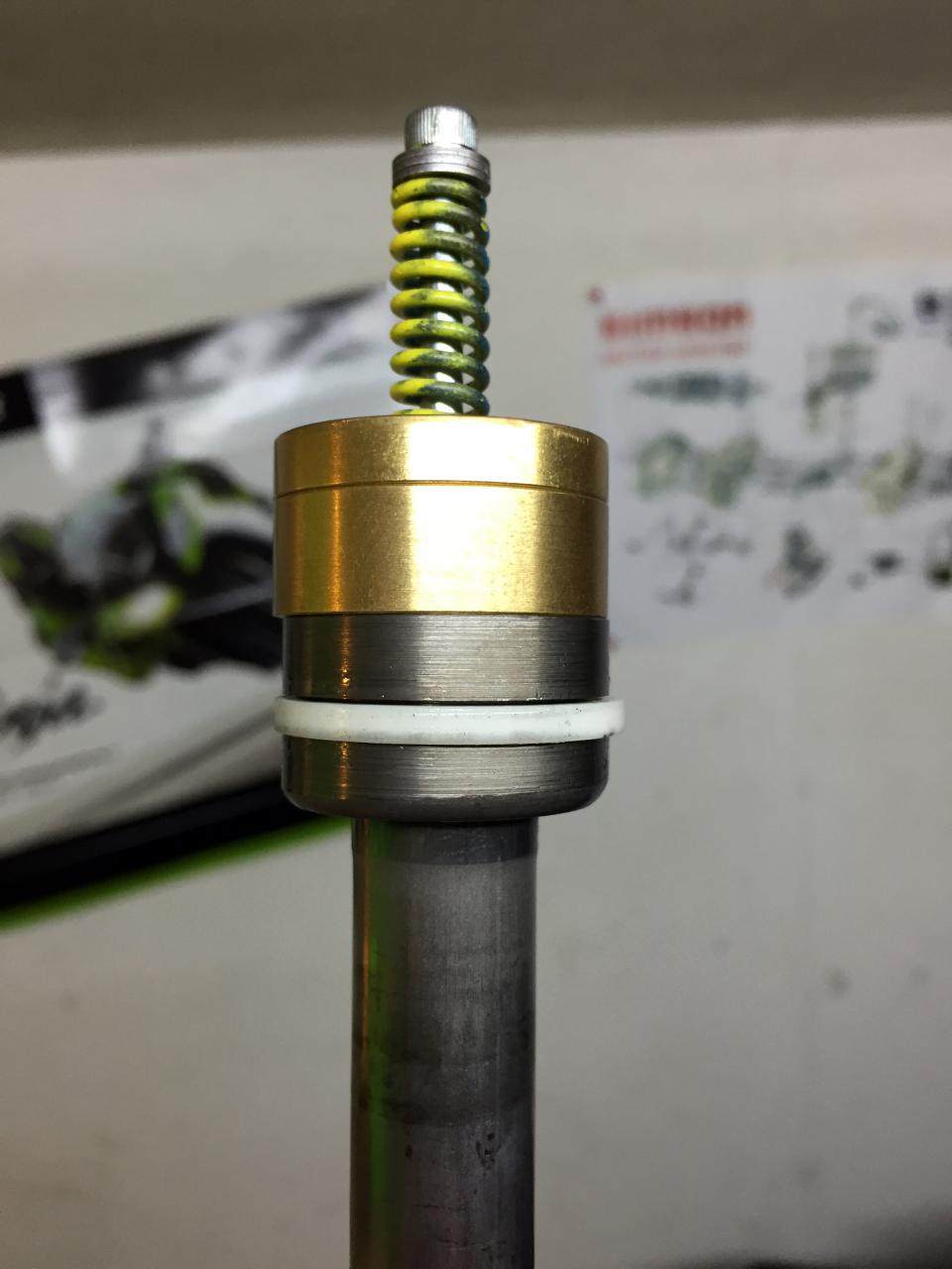 Teil 1: R6 Federbein Benötigte Teile: -Federbein R6 -Umlenkstreben 170mm -Umlenkung Suzuki Bandit -2 Buchsen Wie schon in einigen Thread besprochen ist das Yamaha YZF-R6 RJ11/15 Federbein eine passende Alternative zum Original oder dem Wilbers-Federbein. Alles was dazu zu tun ist, ist das Original Bein gegen das fast gleich große R6 RJ 15 Bein (Teilenummer: 13S-222 10-00) zu wechseln. Zusätzlich werden Umlenkung und Streben getauscht. Das RJ11 Federbein scheint sich etwas vom RJ15 zu unterscheiden, da ein Bekannter nach dem Wechsel ein deutlich höheres Heck mit Original Streben hatte. Hier sind vermutlich keine anderen Streben notwendig. Einfach vorher und nachher am Heck messen. Edit: Außerdem muss der Luftfilterkasten beim RJ11 Federbein etwas höher gelegt werden, da er ansonsten an das Federbein anstößt. RJ 15 passt hier problemlos. In meinem Fall habe ich das RJ 15 Federbein mit 170mm Streben verbaut, um die original Höhe des Hecks wiederherzustellen, da sie nach dem Wechsel etwas kleiner als im Originalzustand ist. Desweiteren habe ich die Umlenkung einer Suzuki Bandit benutzt, da das Federbein ansonsten an der Schwinge anschlagen kann. Mein Teil hat die Kennzeichnung 32F und wurde in der Bandit 650 ab 05, sowie der 1200/1250er von 01 bis 12 verbaut. An sich sollten sich die Teile der Bandit jedoch nicht unterscheiden (soweit mir bekannt). Erforderliche Kenntnisse: Federbein ausbauen Wichtig ist noch, das das untere Auge etwas größer ist als das Original (glaube 1mm). Hier einfach messen und sich z.B. in der Bucht Hülsen zum Ausbuchsen bestellen. Die gibt es mit Schlitz zum einfachen Einpassen. Musste meine nur auf Länge schneiden. Erfahrung: Federbein lässt sich super Fahren. Meiner Ansicht nach, noch besser als das Wilbers. Die Einsteller bieten zusätzlich weitere Anpassungsmöglichkeiten, jedoch sollte man bei Serienbeinen nicht zu viel erwarten. Für Leute die es sich zutrauen: Das Bein ist zerlegbar, wenn auch nicht so einfach. Falls man Infos zu Füllmengen, Öltyp und Ausgleichsbehälterdruck hat und ein bisschen basteln will, kann man ja mal versuchen die Shimstacks anzupassen. Yamaha rückt auf jeden Fall nichts raus. Abnahme: Für den Umbau wird eine Einzelabnahme benötigt, was sich von Prüfer zu Prüfer bzw. Bundesland zu Bundesland schwer oder einfach gestalten kann. Als Unterlagen kann man sich von Suzuki die Zugehörigkeit des Umlenkungsteils zur Bandit bestätigen lassen. Nach ein wenig E-Mail PingPong hat sich herausgestellt, dass sich das R6 Federbein nicht eindeutig als solches zuordnen lässt. Die Nummern auf dem Ausgleichsbehälter sagt laut Yamaha nichts darüber aus. Ich habe das Federbein testgefahren und werde dieses Jahr einen Versuch einer Einzelabnahme in Thüringen (angemeldet in Hessen) starten. Bericht folgt. Teil 2: Race Tech Cartridge Emulatoren Benötigte Teile: -Cartridge Emulatoren (https://www.youtube.com/watch?v=j3QYZEQoN_M ) -Gabelöl SAE 15 -ggf. Distanzierscheiben (DIN 988 ) -Race Tech ,möchte gerne, dass man ihre Federn kauft, jedoch fahre ich die progressiven Wilbers Federn, da diese die richtige Federrate für mich besitzen. In einigen Foren aus den Staaten habe ich nur Gutes über die Teile gehört. Kurz gesagt sind es 2 Einsätze, welche die „Damping-Rod-Forks“, welche auch in der GS verbaut sind, in eine Art Cartridge Gabel verwandeln sollen. Dazu werden die normalen Löcher in den Dämpferstangen aufgebohrt, welche normalerweise die Dämpfung kontrollieren. Diese haben dann nur noch wenig Einfluss und das Öl kann recht leicht hindurch fließen. Am oberen Ende der Dämpferstange wird nun zwischen Stange und Feder der Emulator platziert, welcher die Druckstufendämpfung kontrolliert. Im Lowspeed fließt das Öl durch die Bohrungen. Im Highspeed geht, ähnlich wie bei dem Shimstack in der Cartridge, eine Öffnung auf. Diese wird mittels einer Feder und deren Federrate und Vorspannung eingestellt. Die Zugstufe wird über das Öl angepasst. In der Ausfederflussrichtung öffnet der Emulator ein Check-Valve. Wird eigentlich alles im Video erklärt und die Anleitung zum Einbau ist bei dem Artikel dabei. Dennoch ein paar Infos. Funktionsschema: http://www.racetech.com/page/title/E...%20They%20Work Import: Habe die Teile in der Bucht aus den USA bestellt. Haben mit Versand ca. 125€ gekostet. Zahlung per PayPal. Mit Zollabwicklung (nur Steuer-> Zollgebühren ab 150€ Warenwert) war ich dann bei knapp 150€ Einbau: Damit wir wissen von was wir sprechen: Zuerst baut man die Gabel aus und zerlegt sie in Ihre Einzelteile, wie z.B. bei einem Simmeringwechsel. Tipps zum Aus-/Umbau: Gabel ausbauen: http://www.gs-500.info/index.php?tit...n_%26_ausbauen Gabel zerlegen: http://forum.gs-500.de/showthread.php?t=26828 http://www.gs-500.info/index.php?tit..._selbstgemacht http://forum.gs-500.de/showthread.php?t=20352 Dann habe ich mich daran gemacht die Löcher in den Dämpferstangen auf 8mm aufzubohren und um 2 (auf insgesamt 6) zu erweitern. Steht aber auch alles in der Anleitung der Emulatoren. Jetzt baut man die Gabel wieder zusammen. Dabei lässt man die Unterlegscheibe, welche normale unter der Feder sitzt weg. Die Feder sitzt nun direkt am Emulator. (Ich benutze sie noch, aber dazu gleich mehr). Als Öl nehmen wir SAE15 mit der Standart Wilbers Füllhöhe. Jetzt kommt der Kniff an der ganzen Sache. Der Emulator benötigt zwischen Feder und Dämpferstab 16mm Platz. Somit hat man auch 16mm weniger Raum in der Gabel. Hat man die original Federn vernbaut, kann man einfach den Spacer um 16mm kürzen. Hat man die längeren, progressiven Federn von Wilbers, ist der Platz des Spacers jedoch durch die Feder belegt. In meinem Fall konnte ich durch die Vorspannungseinsteller kein Platz mehr gewinnen, da meine Einstellung bei voll ausgedrehter Schraube war. Ich habe also die Scheibe der Vorspannungseinstellung entfernt (sitzt normal oben auf der Feder). Jetzt rutscht die Feder bis auf die Verschlusskappe durch. Nochmal Danke an Jim für de