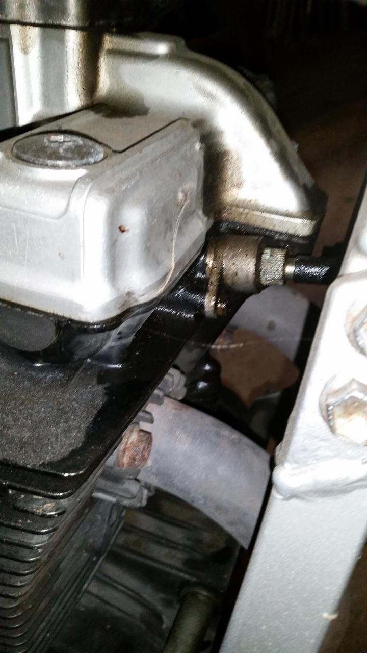 3. Gestern Abend habe ich schonmal angefangen, die Batterie aufzuladen, da es ja nichtmehr weit bis zur nächsten Saison ist Sie ist auch angesprungen...nach mehrmaligen Gurgeln. Mir ist dann aufgefallen, dass sie Öl verliert. Es hat auch sehr gequamlt und gestunken. Das Öl tropft wohl vorne auf den Krümmer. Woher das Öl kommt, kann ich jedoch nicht sagen. Es kommt irgendwo vom Oberen bereich des Motorblocks. Siehe Bild - Das Bild zeigt jetzt nicht meine Maschine. - Ein Bild könnte ich heute Abend noch machen, wenn ich von der Arbeit zu Hause bin
