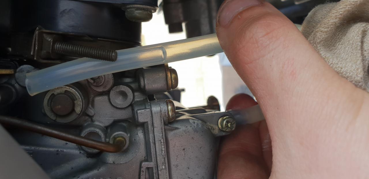 Der vergaser Überlauf ist verbunden mit der Schwimmkammer, sitzt dieser zu oder ist abgeknickt wie in meinem Fall, passiert da selbe als wäre die Tank Belüftung zu. Es kann nicht genug Benzin nachfliesen.