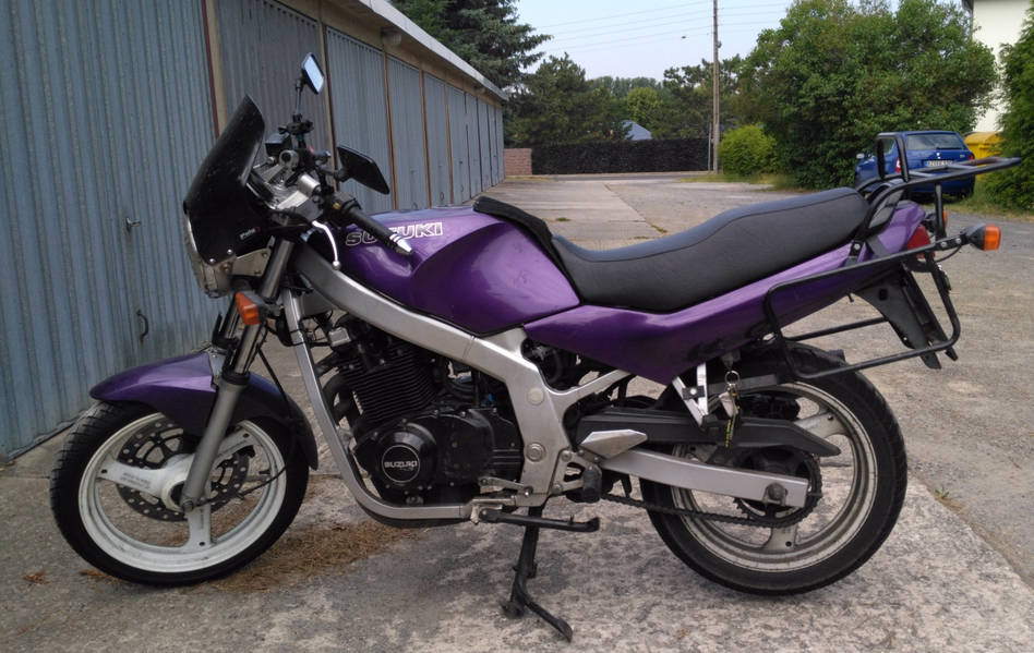 Sozius-Griff am Tank an die Gixxer gebaut. Eine massive Erleichterung für Fahrer und Sozia.