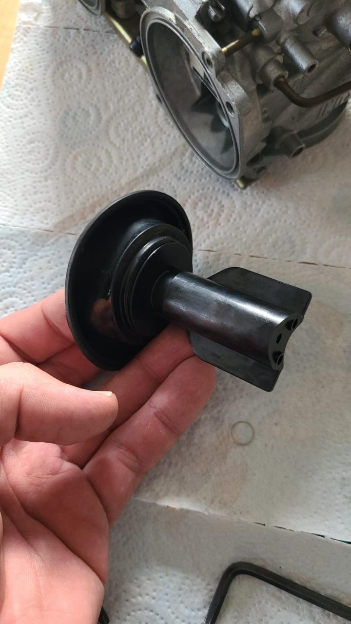 Nein, tatsächlich ist die Feder insgesamt 5x gebrochen in der Membran. Das kann nicht einmal passiert sein, das muss man auch gemerkt haben, wenn man die Maschine kennt. Jetzt ist es natürlich schwer zu sagen, bei welchem der Vorbesitzer das passiert ist, allerdings hätte ich erwartet, dass jemand mit Sachverstand erkennt, dass die Maschine zu fett ist... Und dass das nicht vom Suzuki Kundendienst so eingebaut wurde möchte ich auch mal einfach so annehmen, auch wenn mich die LLD dabei immer noch wundert.