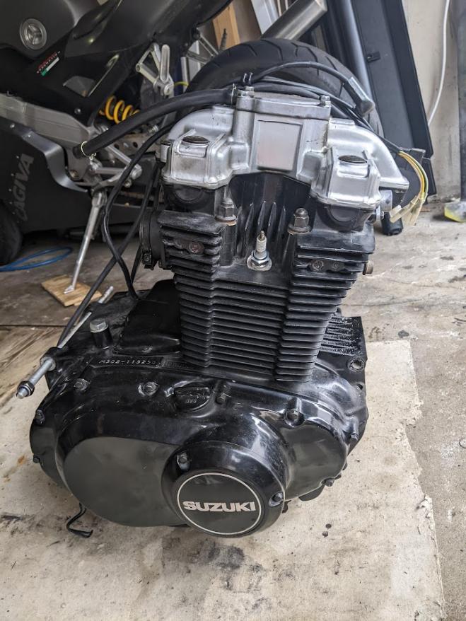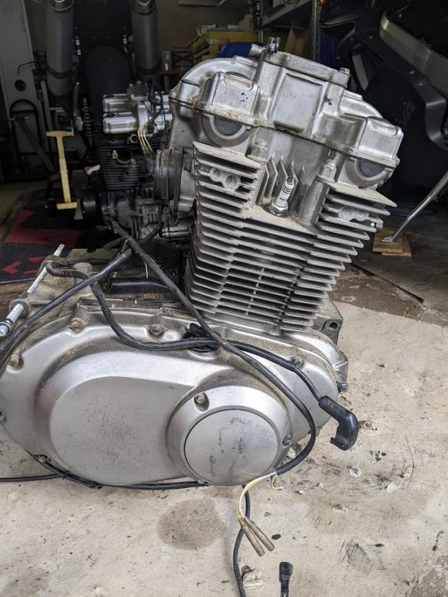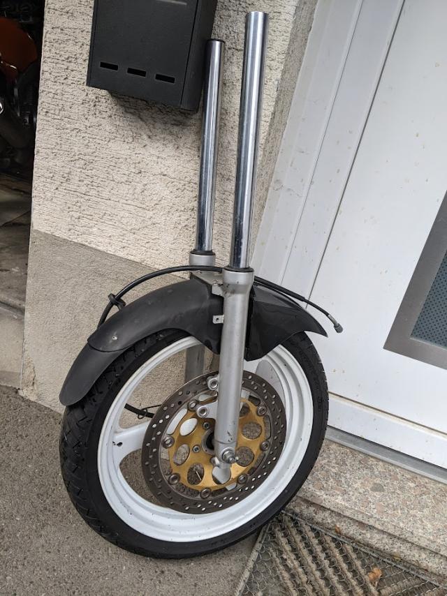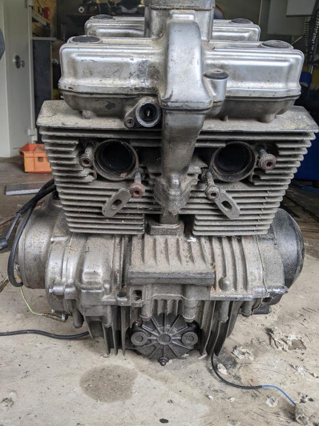 Vorzugsweise alles auf einmal. Nach Absprache können wir das Motorrad auch zusammenbauen. Dazu ist ein zweiter Motor, orig. Auspuff, zwei Gabeln mit Vorderrad und Bremsscheibe, sowie eine Kiste mit Kleinteilen wie Drehzahlmesser, Vergaser etc. Die Bremsscheiben sind gerade noch über Verschleissgrenze. Die Felgen haben Macken. Der schwarze Motor hat einen überholten Zylinderkopf (neue Schaftdichtungen, Ventile eingeschliffen). Ein Zylinder ist wohl grenzwertig verschlissen, der Motor hat Ruckleln verursacht. Der Zustand des silbernen Motors ist unbekannt. Abholung in 69168 Wiesloch. Versand von Kleinteilen möglich. Preis für alles 400€ |
