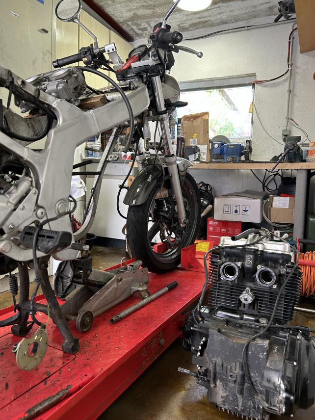 Das Ventilspiel geprüft, ein paar Ventile korrigiert, vergasersynchronisation geprüft und leicht korrigiert, den Luftfilter getauscht und das Leerlaufgemisch eingestellt.