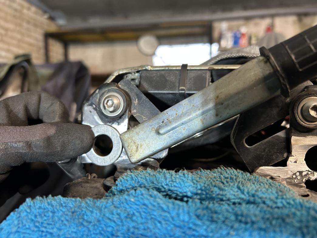 Da war mit Rostlöser und Hitze nichts zu machen. Die Schraube und die Buchse haben sich dank Salz und Co zu einem Teil gemacht.