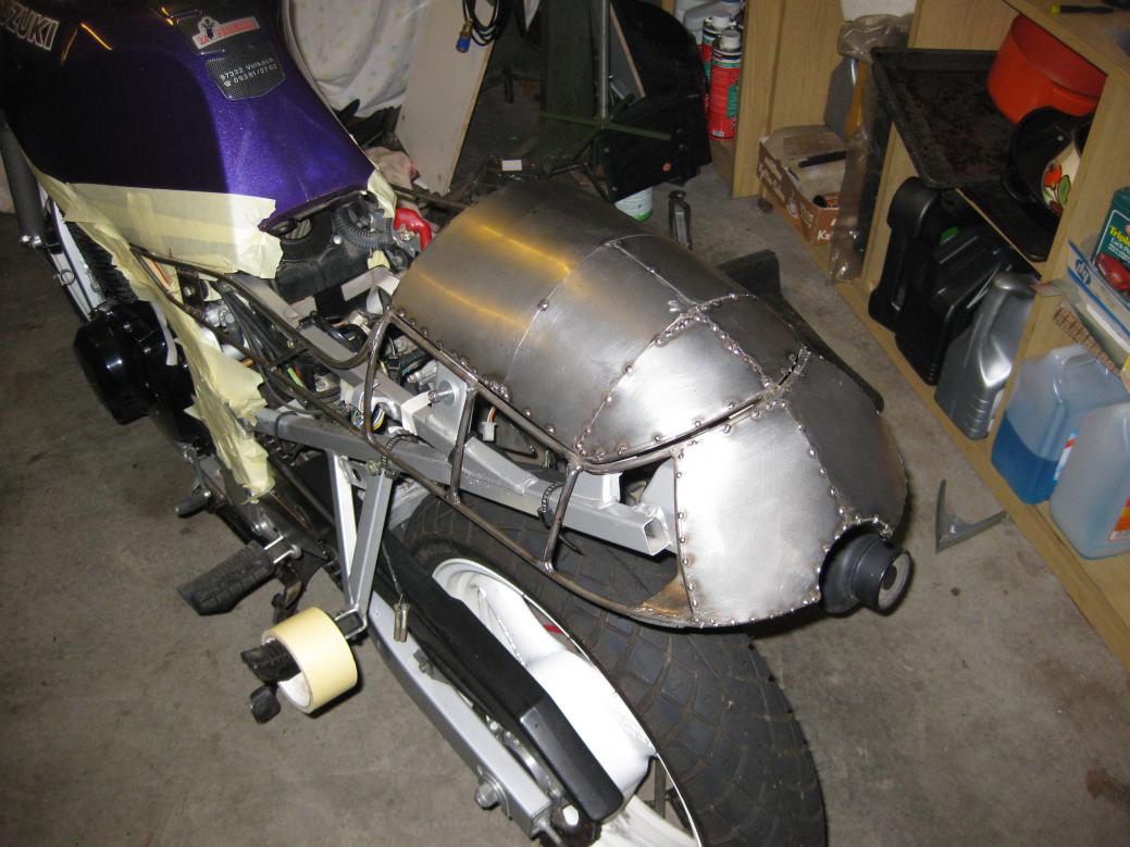 Morgen gibts mal wieder neue Bilder. Heck ist jetzt komplett und wird bald lackiert, Kettenschutz ist auch soweit nur der Radlauf ist eine große Unbekannte.
